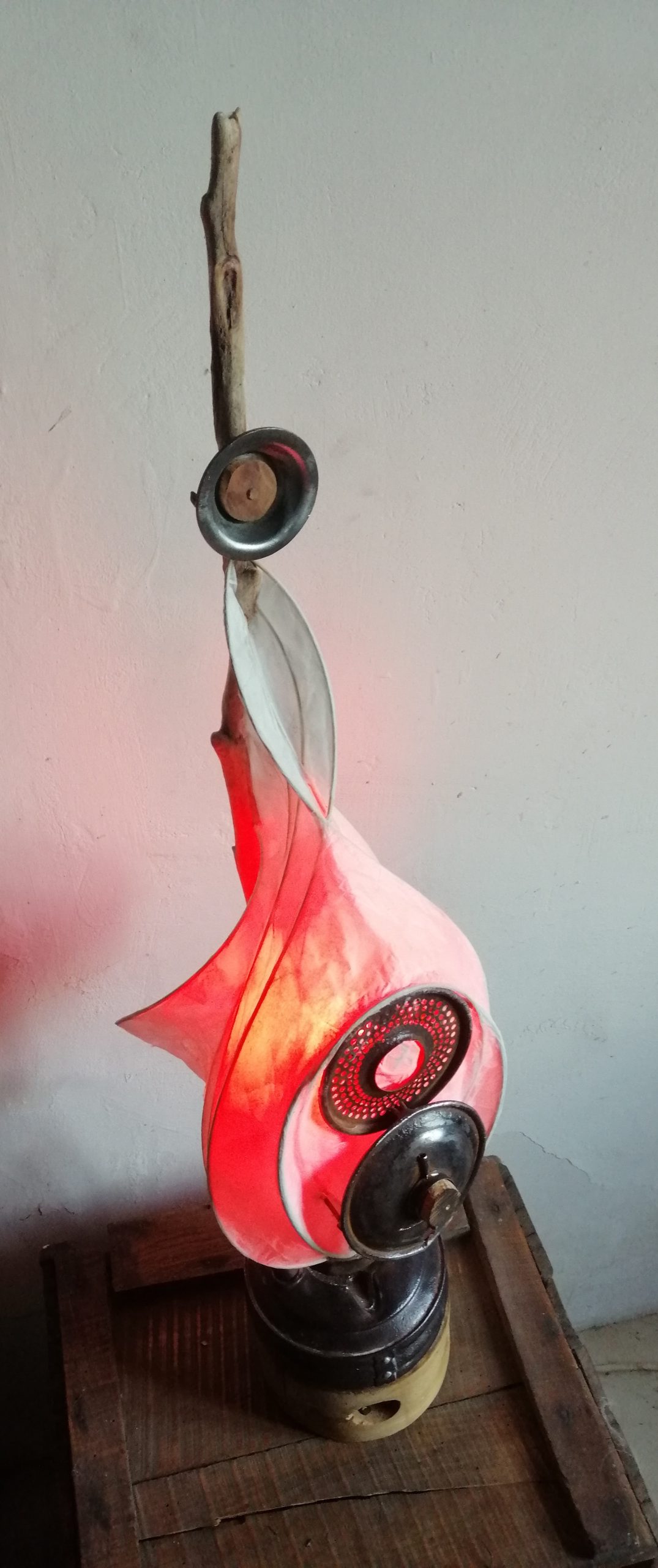 J’incorpore des éléments chinés rares dans mes créations, tels que des vieilles lampes à pétroles, … Ces éléments ajoutent une touche unique à chaque lampe et contribuent à son prix.