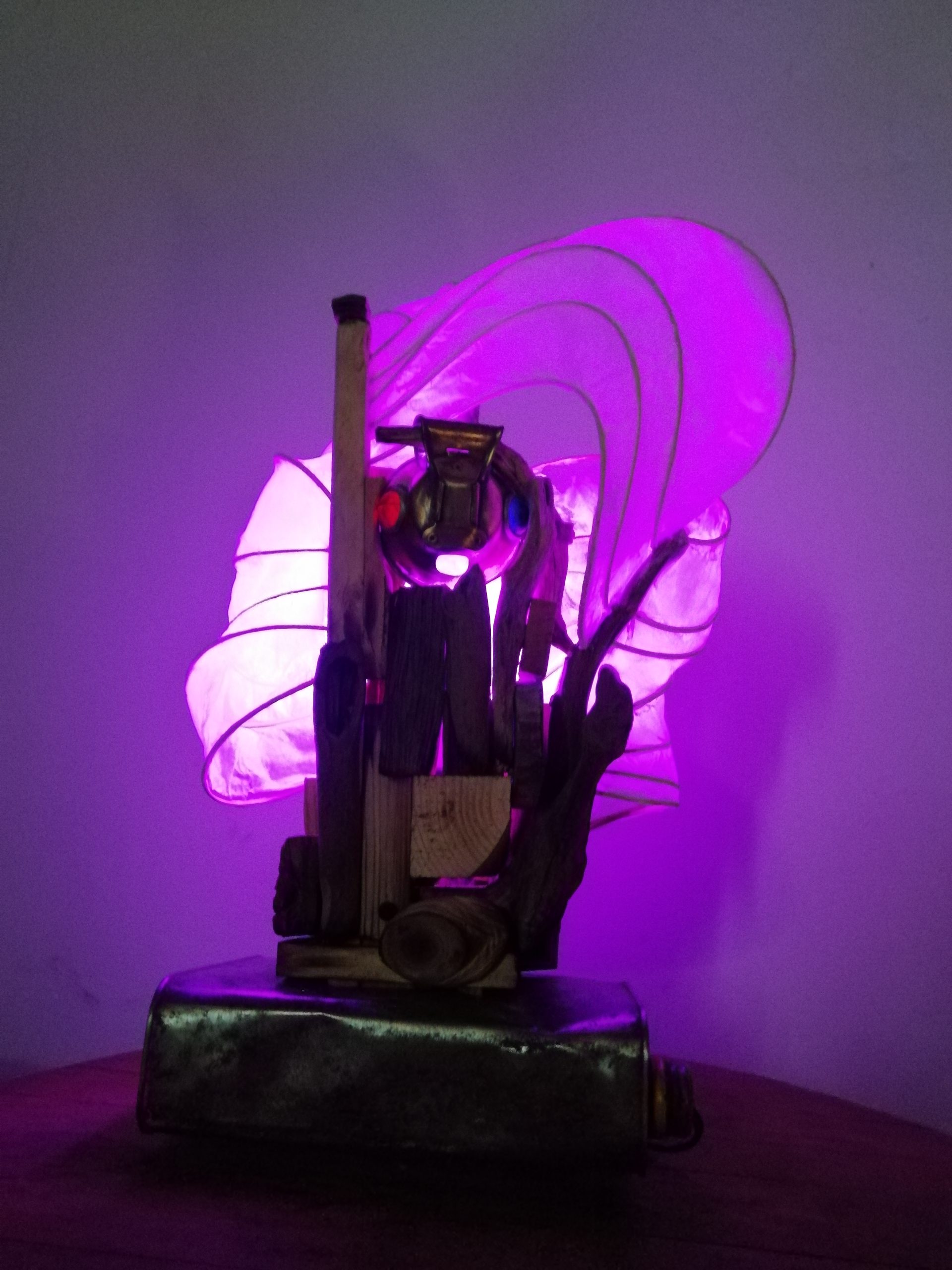 Sa structure en bois, assemblée avec des morceaux de différentes tailles et formes, symbolise la force et la robustesse du dragon. Sa base, issue d’une boîte oubliée, rappelle la solidité et l’intemporalité de la légende.