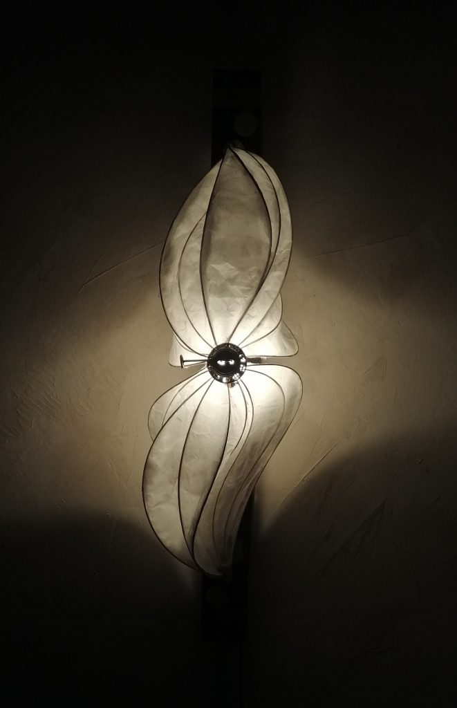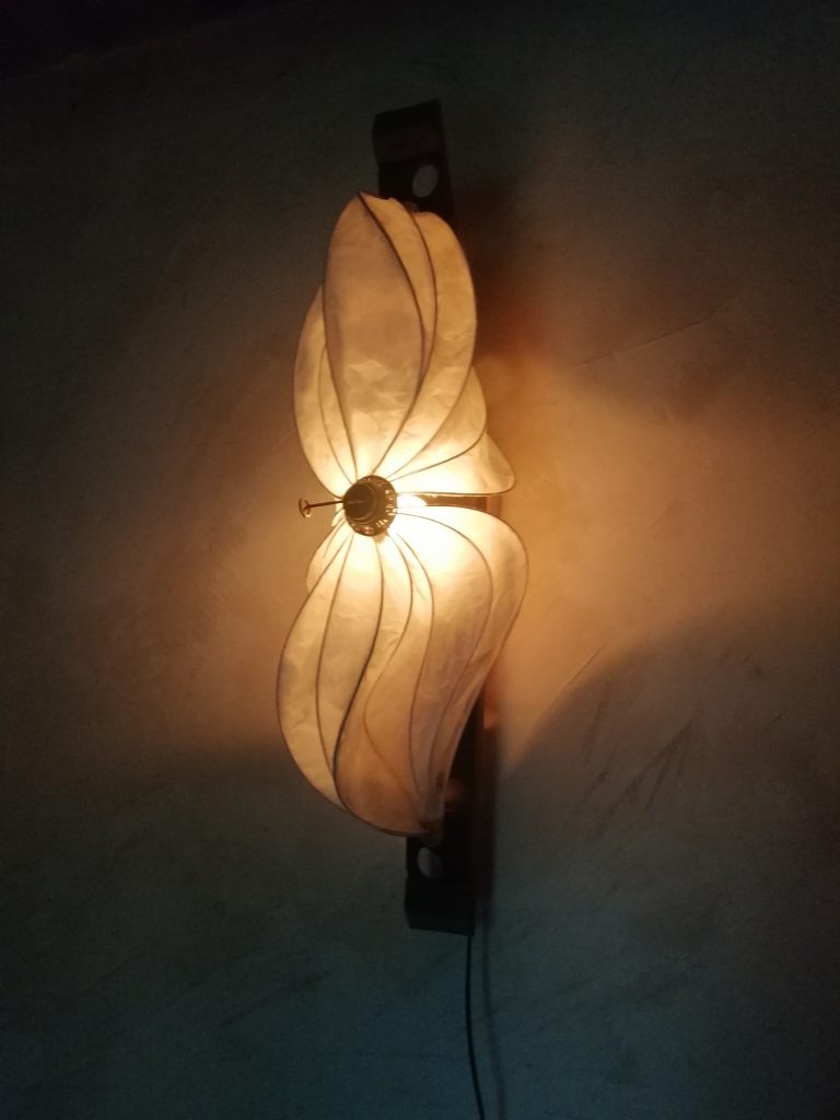 douelle de tonneau, pièce de lampe à pétrole en métal, gros cocon de papier, ampoule connectée